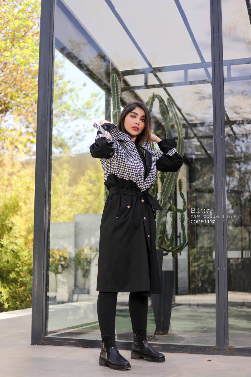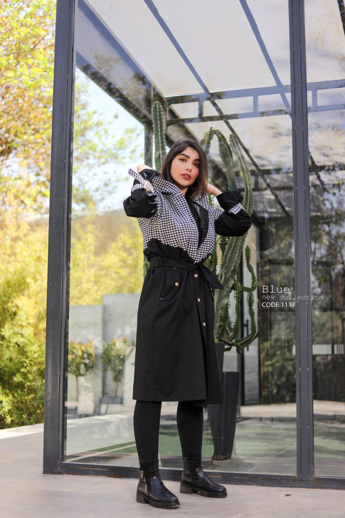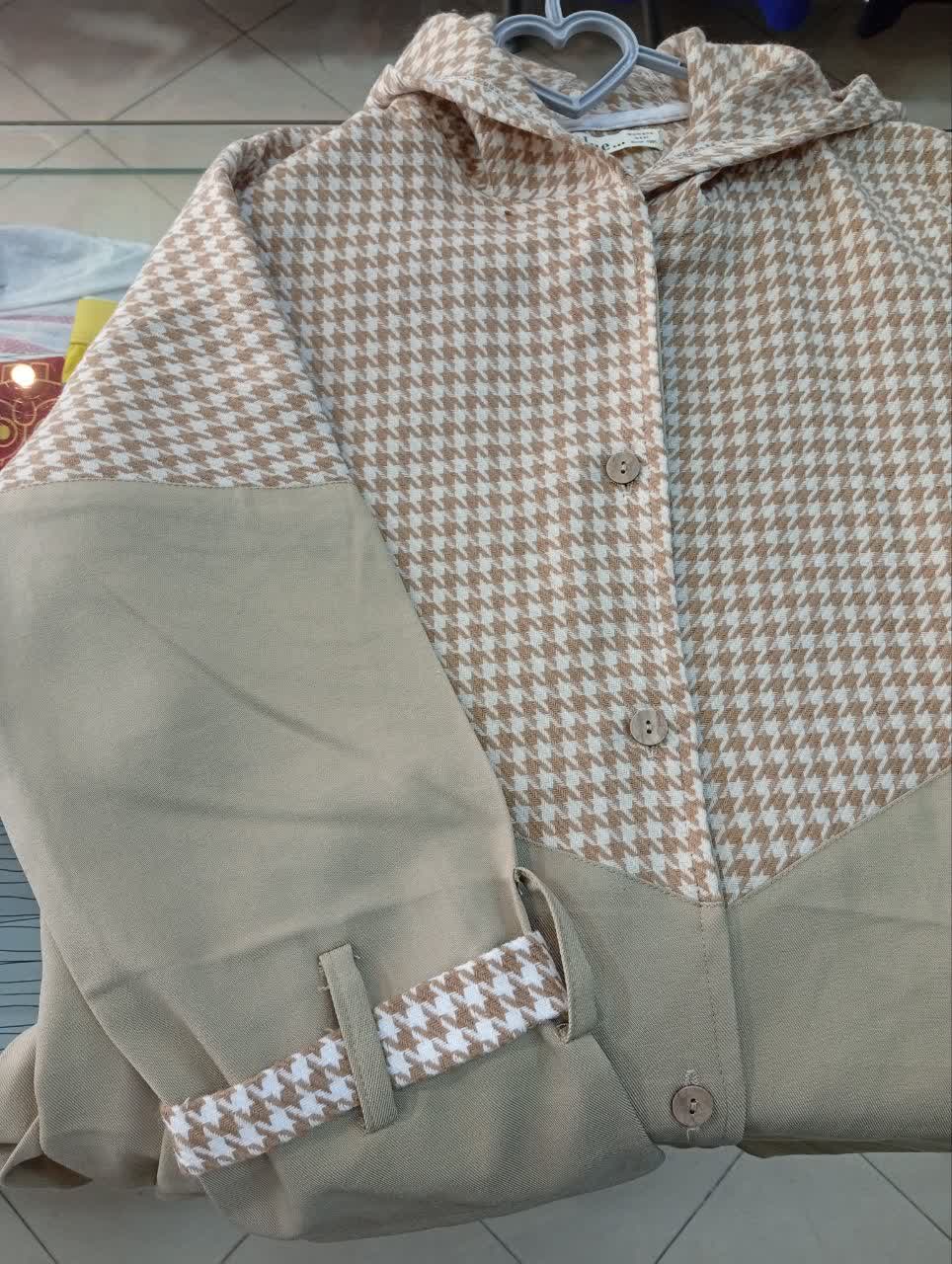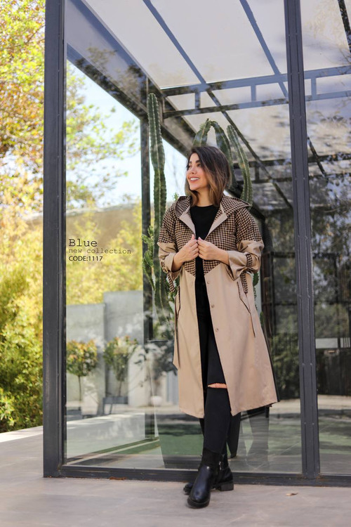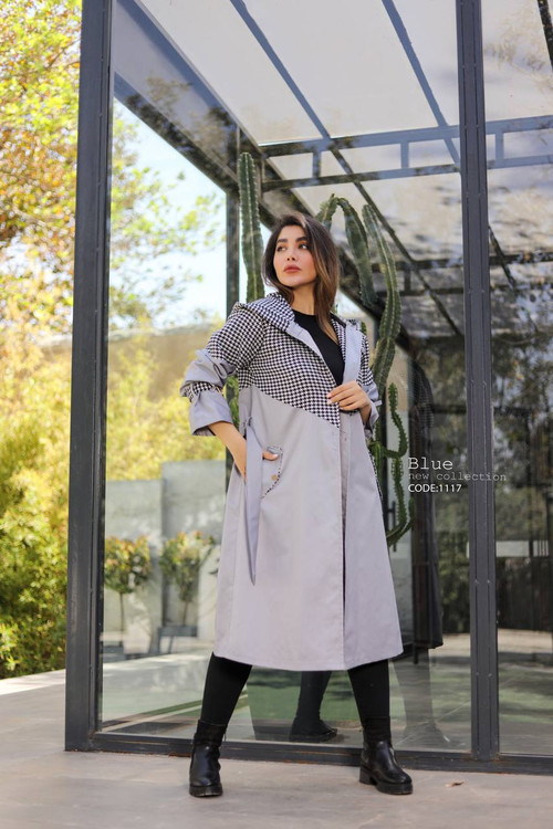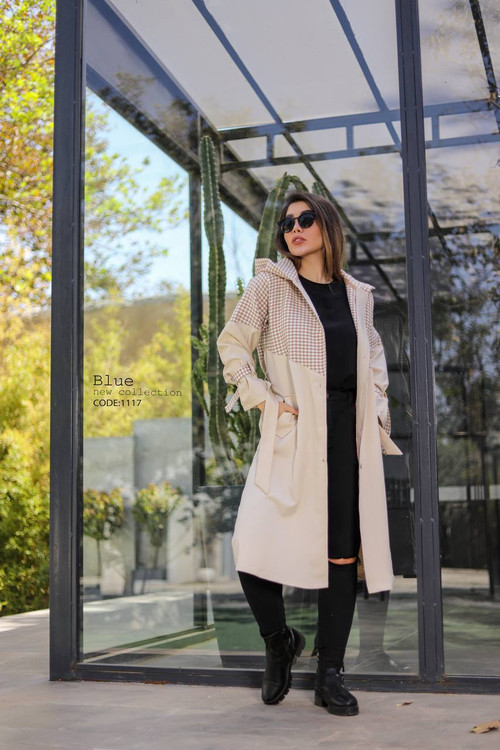 مانتو بلند زنانه کتان ترکیب با پیچازی کلاه دار
