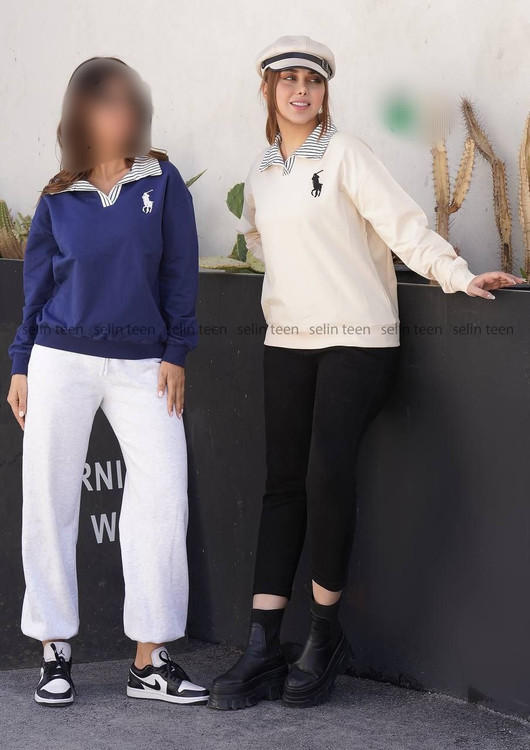 یقه خطی دارد.گلدوزی برند polo دارد.