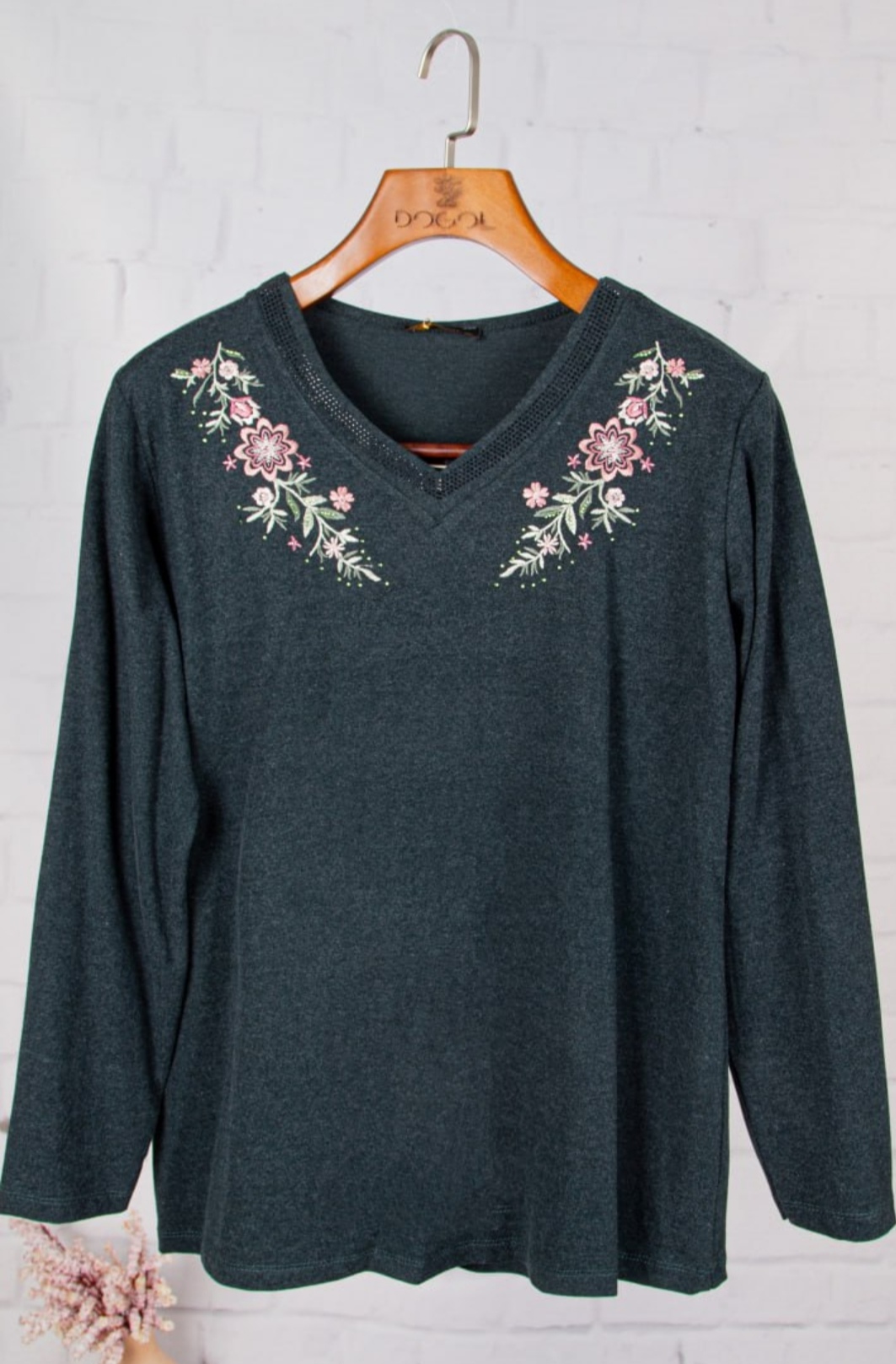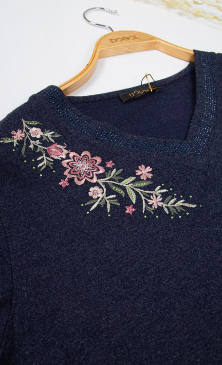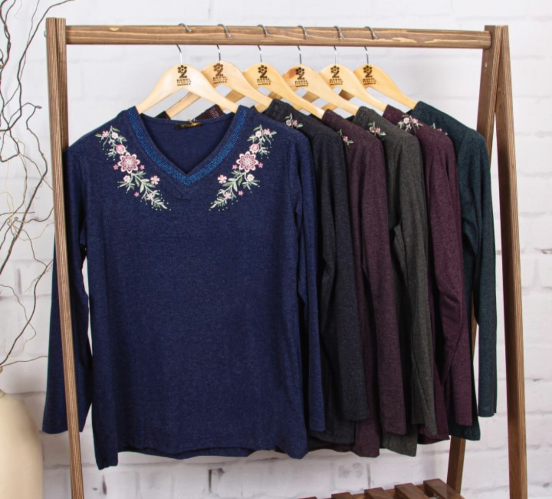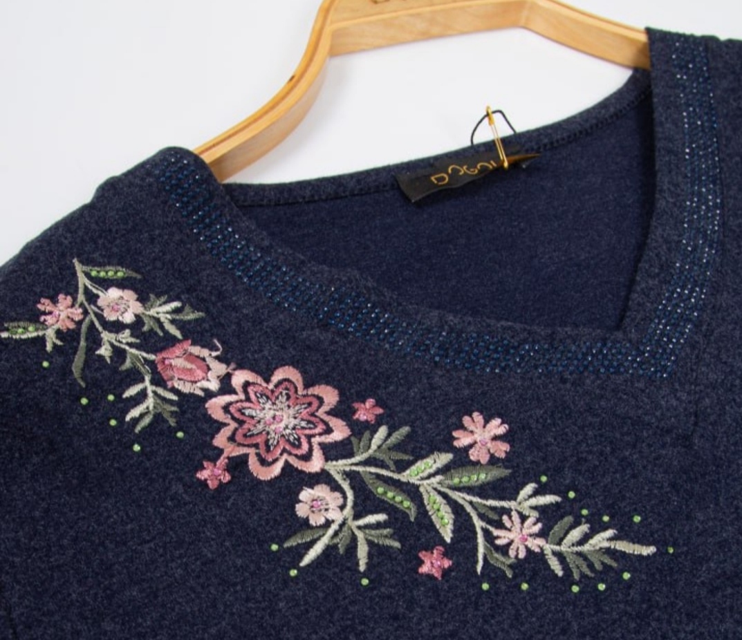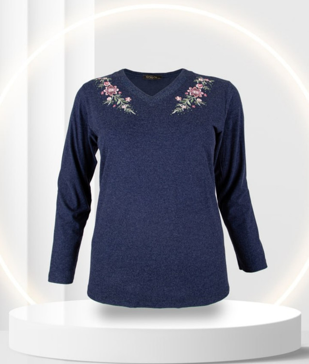 بلوز زنانه سافت موهر یقه هفت گلدوزی