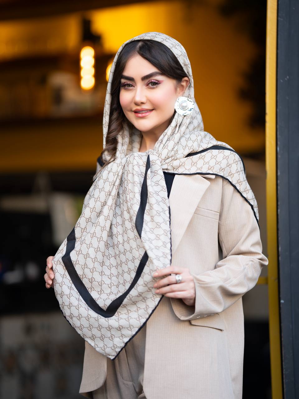روسری قواره 140 طرح گوچی دست‌دوز سیا اسکارف